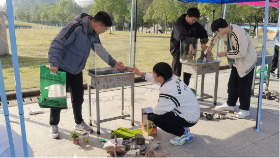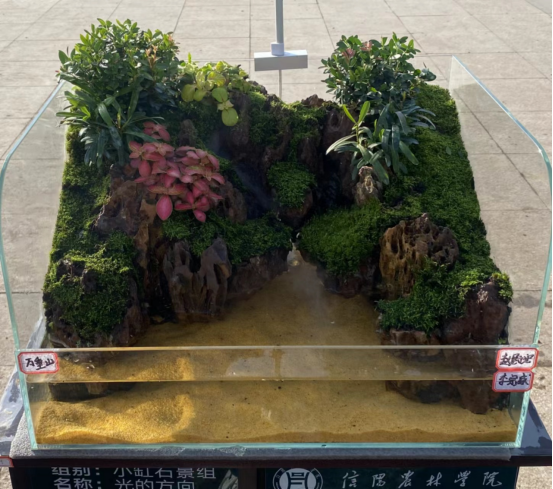 11月26日上午10点至下午5点,在汝宁广场搭建并制作水族箱作品。比赛现场同学们热情高涨,小组成员之间的配合也展现得淋漓尽致,相互协作、统一筹划,利用赛事组委会提供的规定材料,在7个小时左右的时间内,完成骨架搭建、水草种植、设备安装调试等内容,并形成一个完整的水族造景作品。