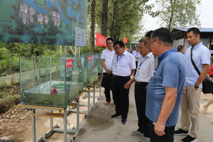 9日上午,各代表成员在砖桥镇李岗村昌盛农业专业合作社稻渔综合种养基地,现场观摩了该合作社稻渔综合种养的实地情况。