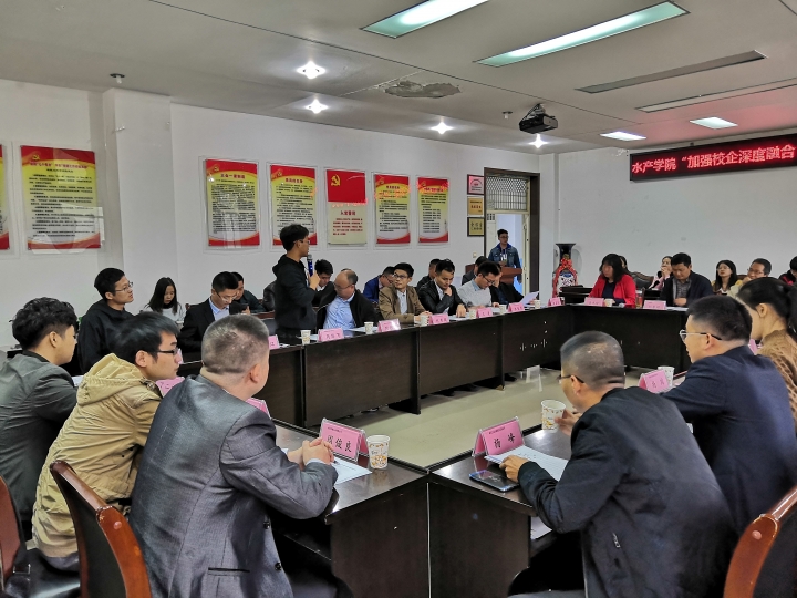 会上,水产学院党总支书记郭旭升致欢迎词,介绍了水产学院基本情况,对各位参会企业的到来表示热烈的欢迎。