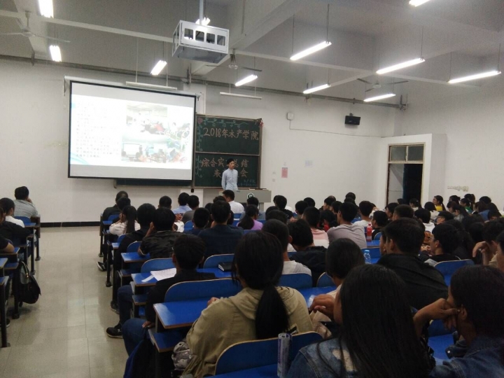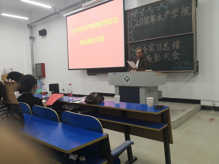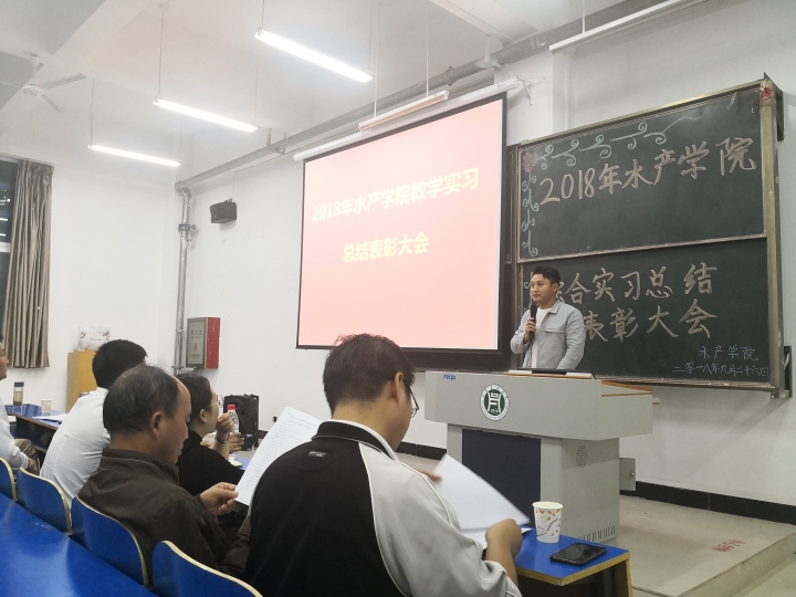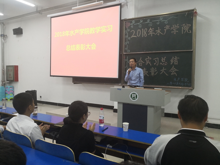 月26日晚,水产学院在E201教室召开了2018年教学实习总结表彰大会。水产学院院长杨东辉、党总支书记郭旭升、副院长周本翔、通威股份华中一区总裁助理兼合肥通威市场部经理熊维峰、实习带队指导教师和2015级、2016级、2018级在校生参加了大会。会议由教学秘书伦峰主持。