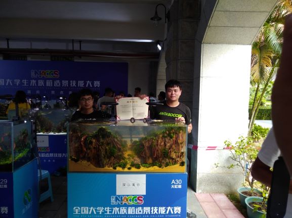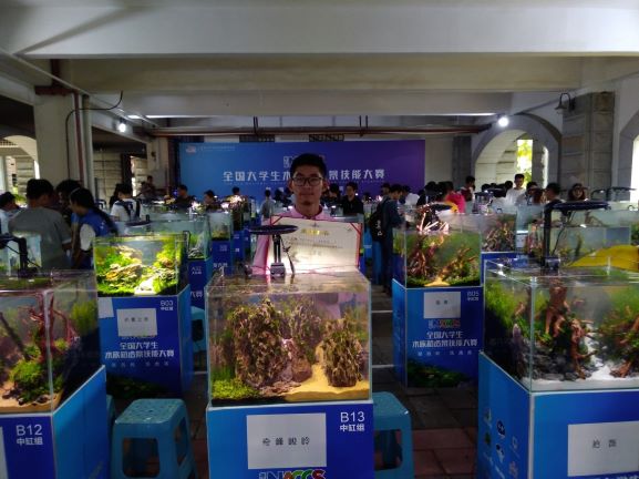 经过三天的激烈角逐,初次参赛的我院代表队取得了优异的成绩,三个组别的比赛项目全部获奖。其中陈志勇同学的作品《闻听山水》获得水陆缸组一等奖,陈志远、李学海同学的作品《深山溪谷》获得大缸组二等奖,邵子瀚同学的作品《奇峰峻岭》获得中型缸三等奖。指导教师赵良杰、林伟、刘开放获得优秀指导教师奖。