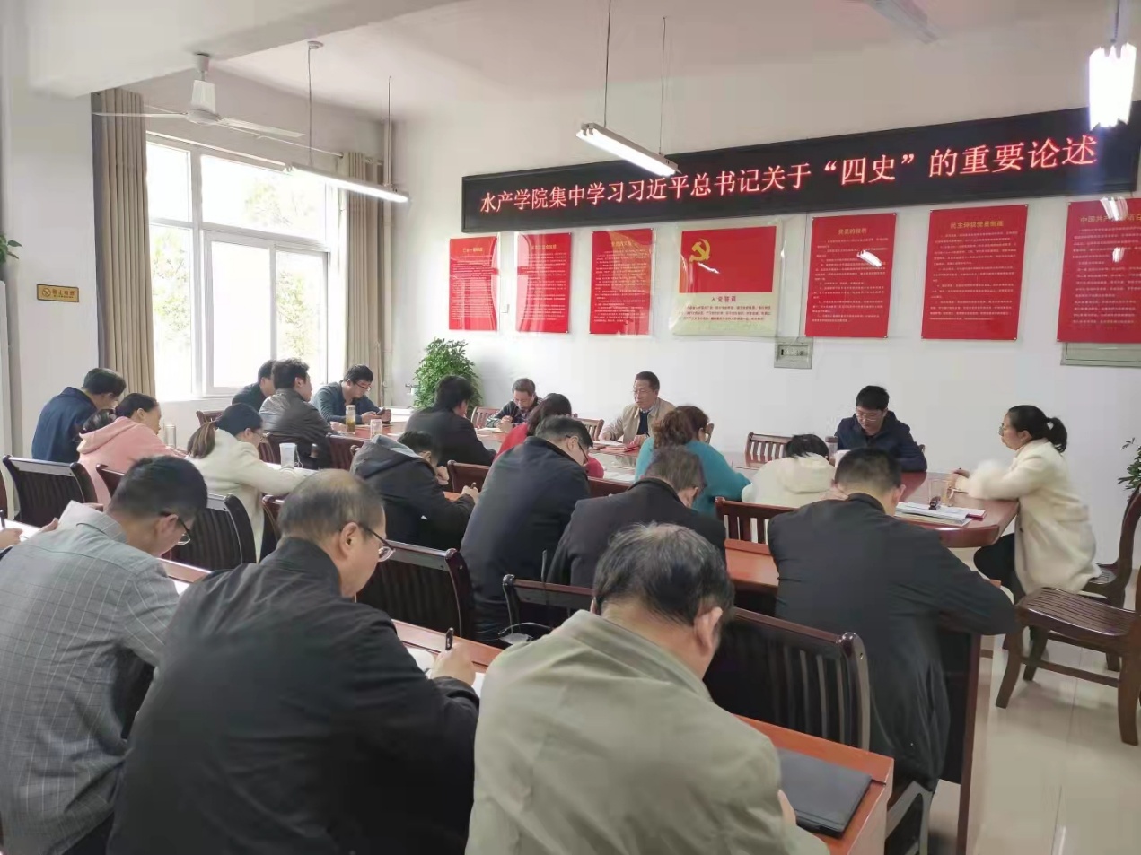 10月26日下午,水产学院在2C330党员活动室召开政治理论集中学习会,集中学习了习近平总书记关于“四史”的重要论述。水产学院全体教职工参加了会议。会议由水产学院党总支书记、院长郭旭升主持。