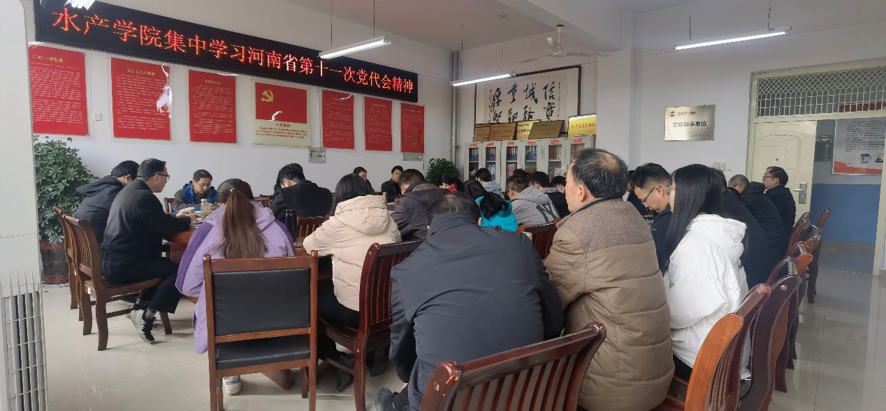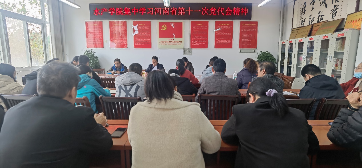 11月9日下午,水产学院在2C330党员活动室召开政治理论集中学习会,传达学习中国共产党河南省第十一次代表大会精神。水产学院全体教职工参加了会议。会议由水产学院党总支书记、院长郭旭升主持。