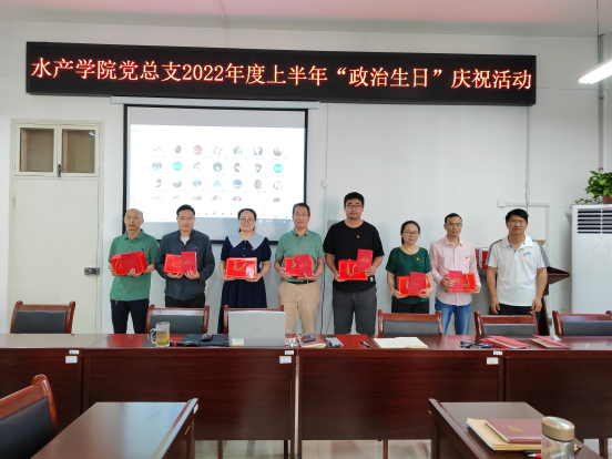 6月7日下午,水产学院党总支在党员活动室2C328开展2022年度上半年党员“政治生日”庆祝活动,为第一、二季度入党的18名师生党员集体庆祝“政治生日”。活动由水产学院党总支副书记黄光玲主持。