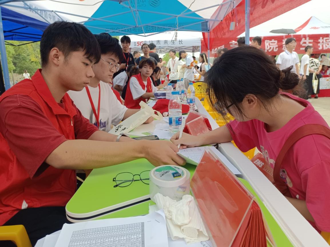 学院领导和专业老师耐心细致解答报到现场疑问,不仅详细介绍了专业的课程设置、教学特色及未来发展方向,还热情地分享了大学生活中的点点滴滴,包括丰富多彩的社团活动、学术竞赛、志愿服务机会以及如何利用学校资源提升自我等。报到现场学院还精心布置了打卡拍照迎新点,更有志愿者代表悠悠浅唱,现场气氛热烈融洽。