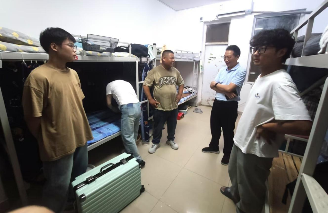 随后院党总支书记黄光玲和院长郭旭升带队深入宿舍看望2024级新同学,与同学们进行亲切友好的交流,详细了解新生的生源地、到校方式、初来学校的适应情况以及宿舍的设施等,叮嘱同学们在学习生活过程中互相包容、理解,希望他们认真学好专业知识,积极参加校园文化活动,发扬水产新人的热情与活力。