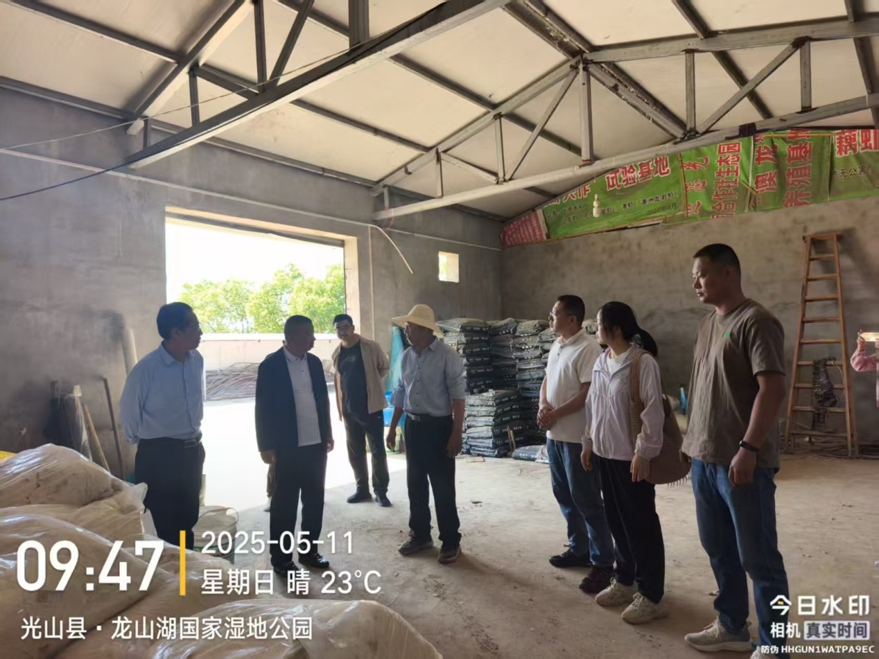 郭旭升教授等与县科技局副局长李军、县农业农村局党组成员李强等相关负责同志一起,先来到光山县文殊乡南王岗村泽润农业专业合作社,该合作社位于光山青虾保护区附近,水资源和养殖条件良好,近年来一直探索性地开展各种虾类如小龙虾、澳洲龙虾的生态养殖试验,建设有标准化的虾类养殖小棚10余个,其基础设施条件、地理设施环境非常适合开展光山青虾的原种保持和家系选育工作。团队就该合作社各方面基础设施条件、目前开展的工作等与负责人进行了交流,并对养殖场目前存在的问题和未来可能开展的合作规划进行了探讨交流。