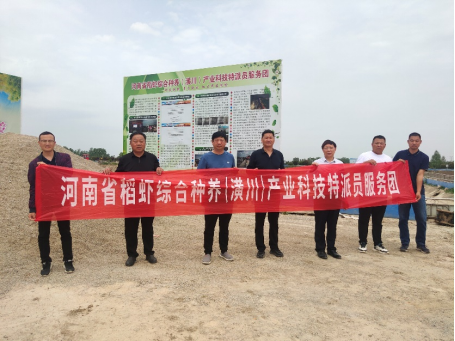 5月2日,河南省稻虾综合种养产业科技特派员服务团(以下简称服务团)团长杨东辉教授、河南省科技特派员宋世枝研究员,服务团成员苏超群博士、杨铁柱博士一行4人赴潢川县河南华来时代农牧科技有限公司开展服务,对“稻-虾-鳖”和“稻-虾-锦鲤”综合种养新模式进行技术指导。