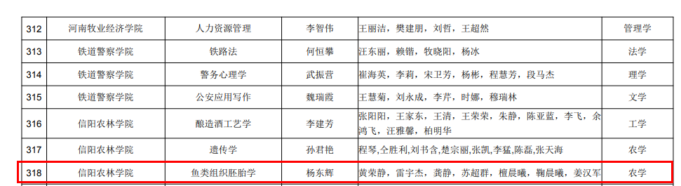 近日,河南省教育厅公布了2021年度河南省本科高校精品在线开放课程立项建设名单。教研室成员黄荣静等老师申报的《鱼类组织胚胎学》 精品在线开放课程成功获批。
