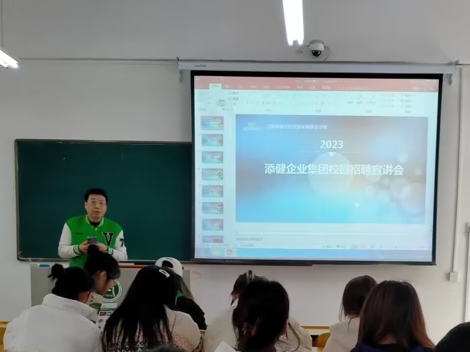为更好地拓宽2023届毕业生就业渠道,促进毕业生更加充分更高质量就业,3月25日下午15点,食品学院邀请上海添健集团在二教213B举行专场招聘宣讲会,我院2023届毕业生积极参加。