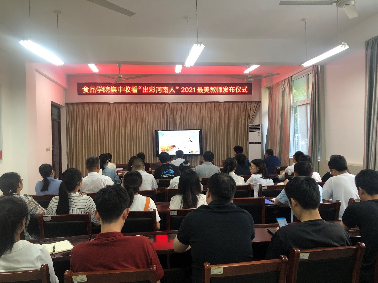为贯彻落实全国、全省教育大会精神,营造浓厚的尊师重教氛围,9月10日,正值第37个教师节当天,食品学院组织全体教师观看“出彩河南人”2021最美教师发布仪式。