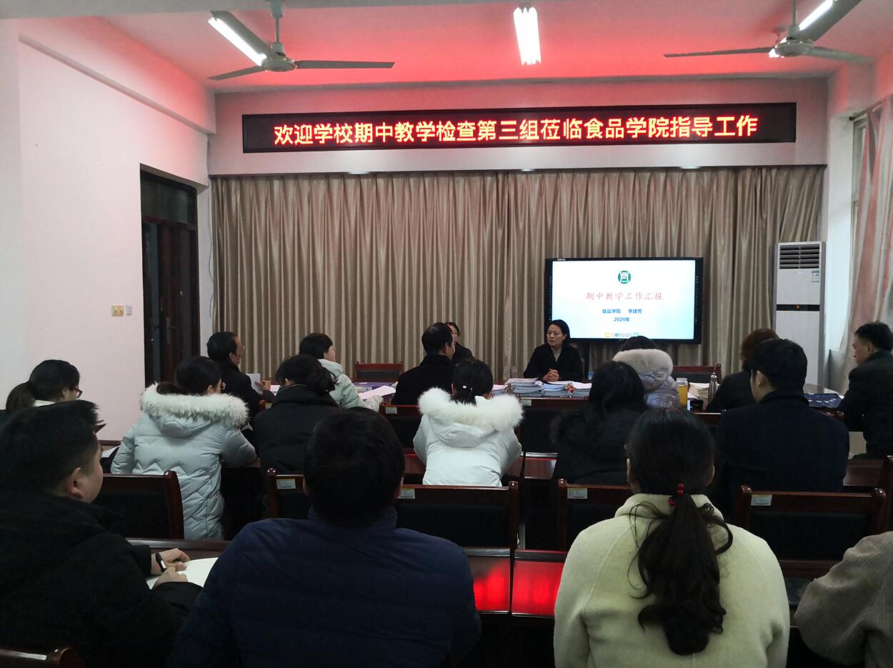 会上,邢院长对校级检查组的到来表示热烈欢迎,检查组的到来是帮助我们食品学院年轻教师成长和帮助我们食品学院在教学质量提高方面起到很大的促进作用,并请检查组成员对我院督导检查认真负责,不护短,不绕弯,直面问题,实事求是,为食品学院后期迎接本科教学工作审核评估打下坚实的基础。李建芳副院长从学院在本学期教学工作中专业教师承担教学任务的统计情况;院教学督导组对本科教学工作以及教学效果的检查督导情况;院本科教学整体教学档案的收集归档;课堂效果调研发现的问题及改进措施等各项工作进行了系统的汇报。