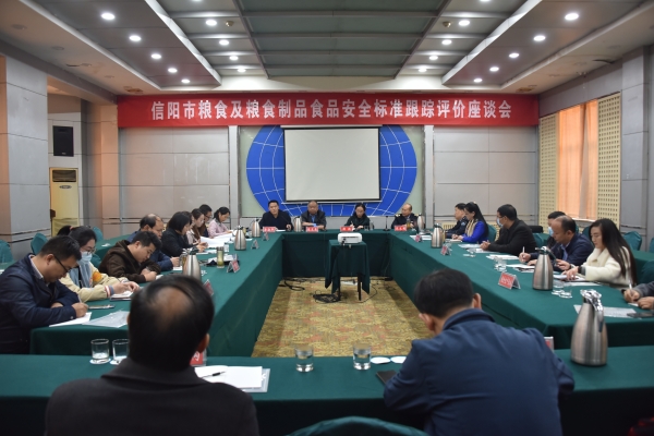 2020年10月29日,信阳市粮食及粮食制品食品安全标准跟踪评价培训会在信阳市浉河宾馆举行。本次座谈会的参会人员由信阳市卫健委成员、信阳市市场监督局监管人员、信阳市高校教师和粮食加工企业负责人等组成。beat365在线平台官网食品学院副院长邵颖、高级实验师邬全喜和专任教师陈秋怡应邀参会。会议由信阳市卫健委监督科科长郭海平主持,食品学院副院长邵颖对食品安全标准评价做解读培训。