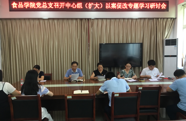 8月14日下午,食品学院党总支在实验楼1B206会议室召开中心组(扩大)以案促改专题学习研讨会。会议由院党总支书记夏新奎主持,学院班子成员、党支部书记及科级以上干部参会。