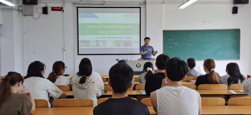 6月23日上午,河南农业大学食品科学技术学院食品质量与安全系党支部书记王田林老师一行到我院开展2026年硕士研究生招生宣讲活动。学院2022级本科生参加了本次宣讲会。