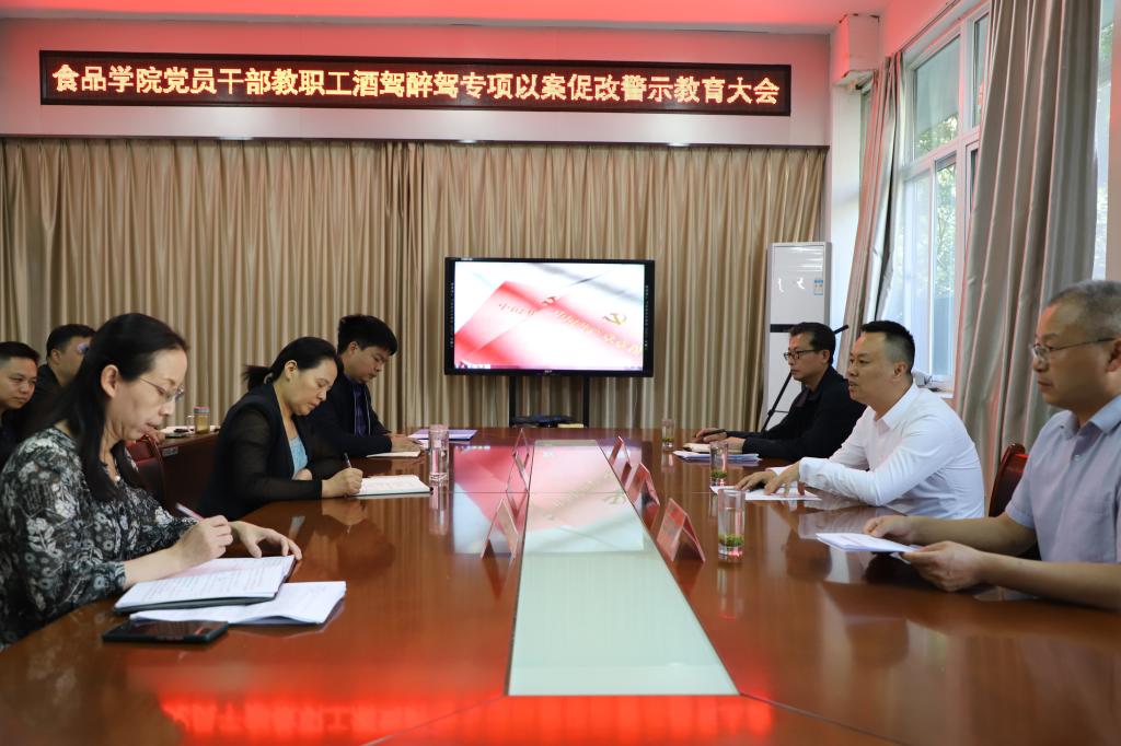 10月17日下午,食品学院召开党员干部教职工酒驾醉驾专项以案促改警示教育大会,校纪委书记陈寒冰,纪委副书记王国艳,食品学院领导班子成员及全体教职工参加会议。会议由食品学院院长邢淑婕主持。