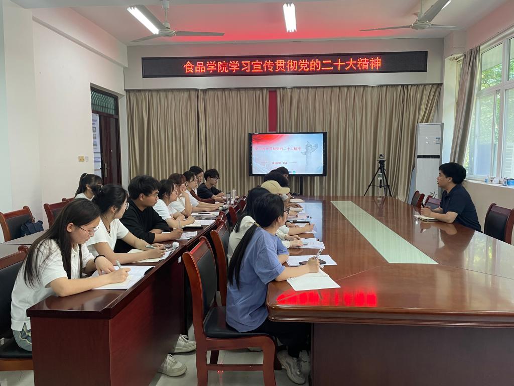 4月20日下午,食品学院在科技楼1B206举办学习宣传贯彻党的二十大精神主题党课。党总支副书记刘涛讲授党课,学院学生党员和2023年春夏学期拟发展对象共40余人参与学习。