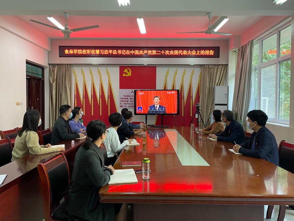 食品学院在科技楼1B206会议室集中收看了开幕会直播盛况,学院严格按照疫情防控要求,组织班子成员、科级干部共同参加学习。其他老师和学生通过网站、客户端等形式收听、收看大会盛况。