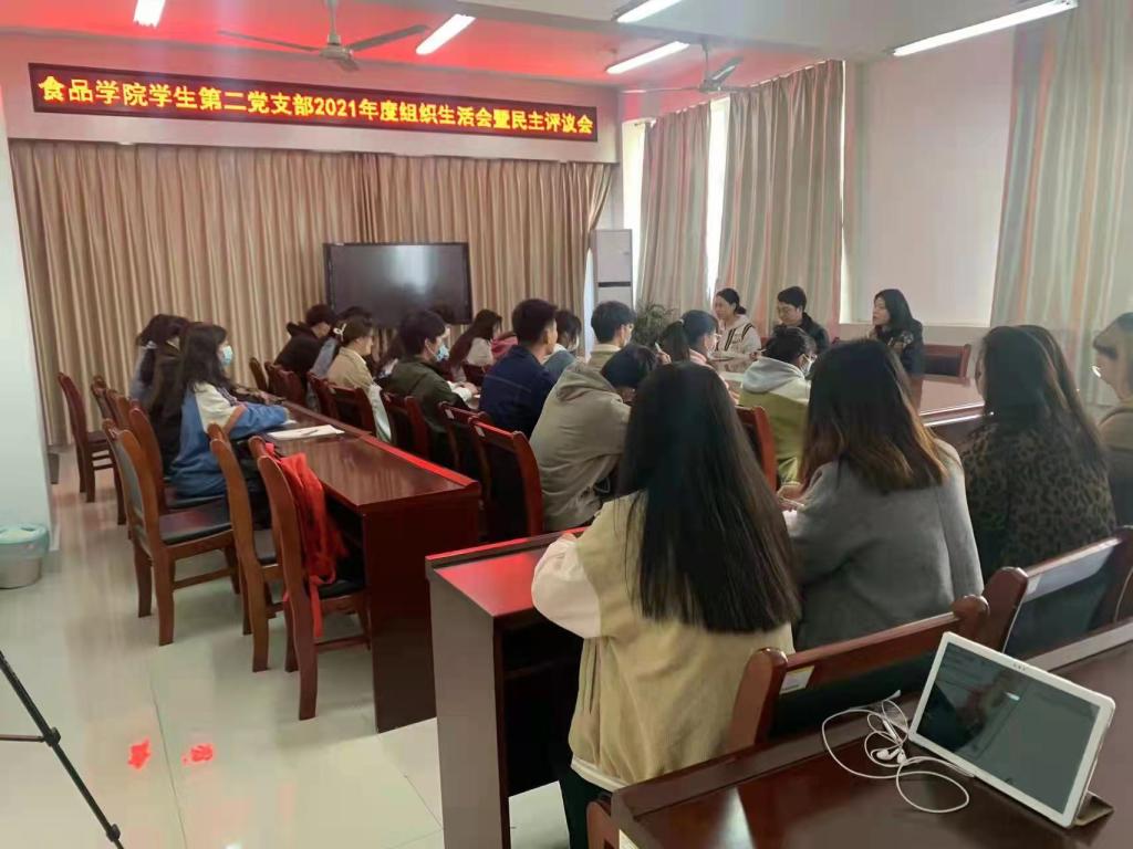 根据《中共河南省委组织部转发〈中共中央组织部关于召开2021年度基层党组织组织生活会和开展民主评议党员的通知〉的通知》(豫组通〔2021〕41号)和《beat365在线平台官网2021年度党支部组织生活会和开展民主评议党员实施方案》(信农组发〔2022〕4号)文件要求,食品学院学生第二党支部于2022年2月22日召开了2021年度组织生活会暨民主评议党员大会。会议采用线上线下相结合的方式进行,会议由支部书记柳诚刚主持。