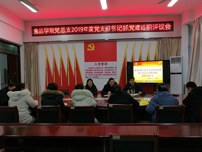 1月10日下午,食品学院党总支在1B206会议室召开2019年度党支部书记抓党建述职评议会。学院党总支书记夏新奎、院长邢淑婕,教工、学生党支部5位书记以及部分教师党员代表参加会议。会议由院党总支副书记刘涛主持。
