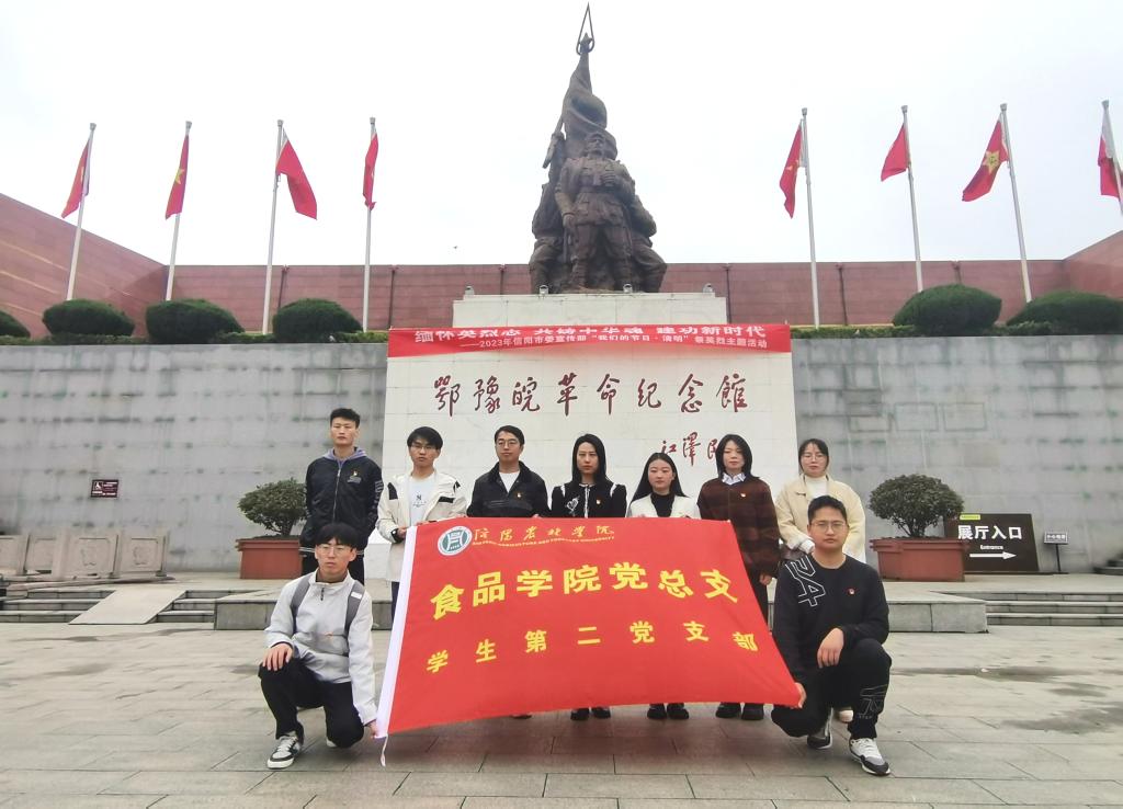 清明节前,为加强大学生对革命先烈的怀念和进行党史学习教育,4月4日上午,食品学院学生第二党支部前往信阳鄂豫皖革命纪念馆举行“清明祭英烈”活动,食品学院学生第二党支部柳诚刚老师、易蕾老师及部分学生党员参与此次活动。