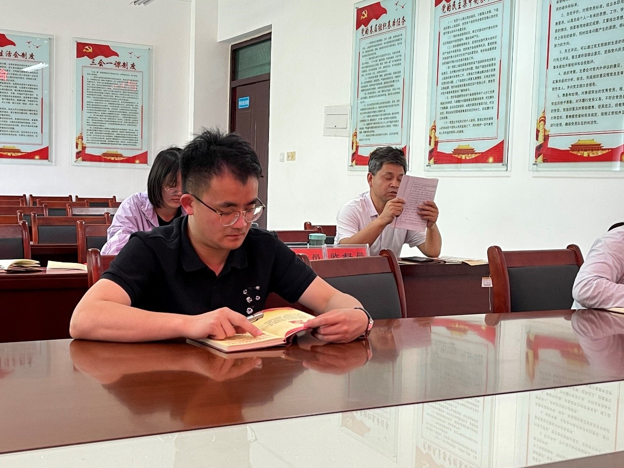 会议首先,面对鲜红的党旗,党支部组织员李坤作为领誓人,带领支部成员一起高举右手,再次庄严宣誓,重温了自己对党忠诚的铮铮誓言,表达了“不忘初心、牢记使命”的信心和决心。接着,李坤同志和桑大席同志宣读了自己的入党志愿书,带领党员同志们重温入党申请,增强爱党意识;重温入党志愿,增强忧党意识;重温入党誓词,增强护党意识;重温党章规定,增强兴党意识。