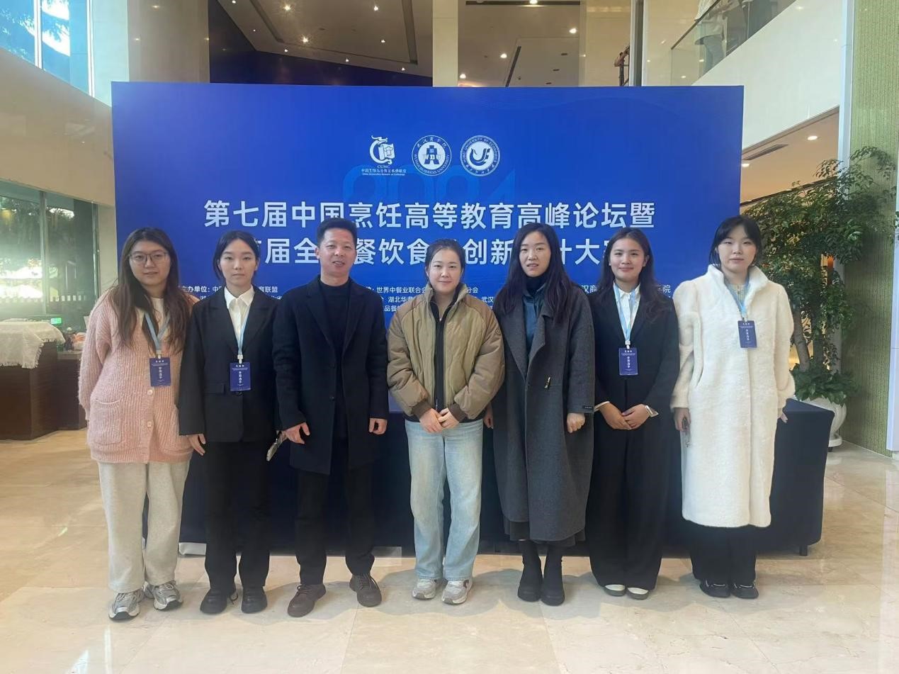 11月30日—12月1日,第七届中国烹饪高等教育高峰论坛暨首届全国餐饮食品创新设计大赛在武汉举办,我院烹饪与营养教育教研室主任张阳阳副教授、周枫老师受邀参加会议,周舟老师带领学生李慧敏、刘心雨、樊姝琦、王宇琪参加首届全国餐饮食品创新设计大赛。