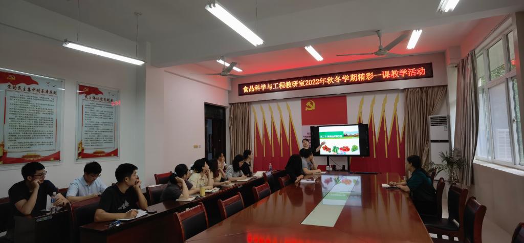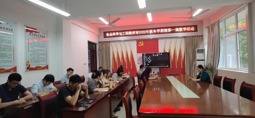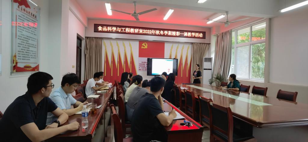 8月26日,食品学院食品科学与工程教研室在1B206开展“精彩一课”教学讨论活动。活动由教研室主任王荣荣主持,教研室全体教师参加。