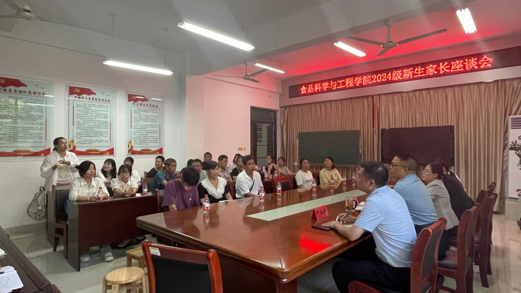 在金秋九月的丰收季节,食品科学与工程学院迎来了一群充满活力的新生和满怀期待的家长们。为加强家校沟通,共同关注和支持新生的成长与发展,9月7日,食品科学与工程学院在1B206召开2024级新生家长座谈会,学院党总支书记李海祺、院长李建芳,党总支副书记严兆洋、副院长王荣荣、副院长朱静,各教研室主任及新生家长代表共50余人参会。会议由学院党总支副书记严兆洋主持。