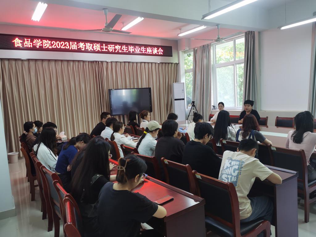 5月24日下午,食品学院在实验楼1B206会议室召开2023届考取硕士研究生毕业生座谈会。学院党总支副书记刘涛出席座谈会并讲话,就业专员黄卉卉老师以及考取研究生的学生代表等40余人参加了座谈会。