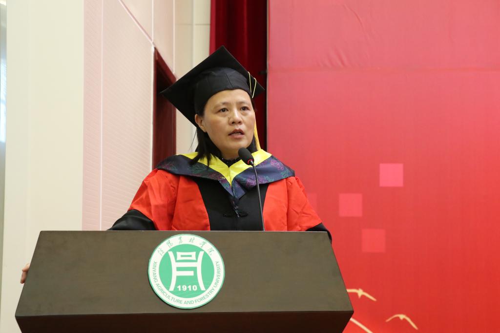 随后,教师代表陈龙、毕业生代表张艳、在校生代表楚一帆依次发言;食品学院院长邢淑婕教授发表热情洋溢的致辞,她首先向顺利完成学业的毕业生表示最热烈的祝贺和最美好的祝愿,向为同学们的成长倾注心血、付出辛劳的全体教职工致以崇高的敬意。希望即将离开母校的学子:一定坚守青春的理想,给自己多一点时间和等待;始终追求人生的卓越,让自己多一份责任和担当;常怀感恩之心,给他人多一份尊重和关怀。深情寄语即将远行的学子:无论人生道路会有怎样的风景,你们永远都是信农食品人,请始终关注和支持你们的母校,母校永远是你们的心灵故乡!