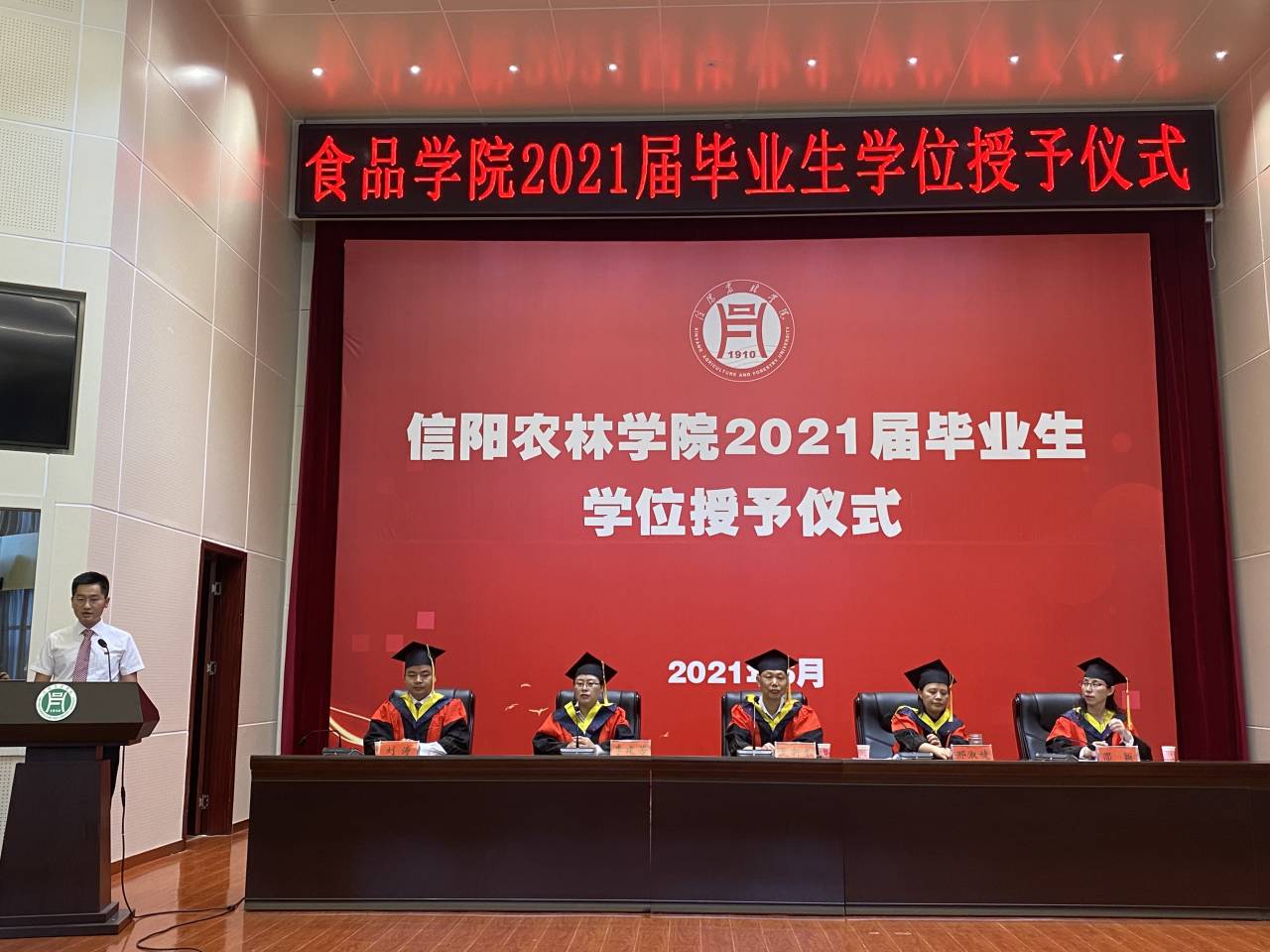 仪式上,学校学位评定委员会委员、食品学院学位评定分委员会主席、学院院长邢淑婕教授宣读了2021届毕业生学士学位授予决定;食品学院党总支书记夏新奎教授宣读了关于表彰2021届优秀毕业生的决定;食品学院副院长李建芳宣读了2021届毕业生学士学位授予名单;食品学院副院长邵颖宣读了关于表彰2021届优秀本科毕业论文的决定;食品学院党总支副书记刘涛宣读了关于表彰考取硕士研究生的2021届应届毕业生的决定;省级优秀毕业生、校级优秀毕业生、获得优秀本科毕业论文以及考取硕士研究生的2021届毕业生依次上台领奖。