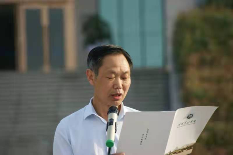仪式最后,夏新奎老师在认真听取两位同学的演讲后,首先给与了高度肯定,并再次重述党旗的意义。其次,夏新奎老师强调2021年是中国共产党成立100周年,我们必须要持续加强开展党史学习教育。最后,夏新奎老师提出三点希望:一、希望你们学史增信补足精神之钙,做信仰坚定的有志青年;二、希望你们学史崇德,锤炼道德修为,做文雅有礼的有德青年;三、希望你们学史力行激扬拼搏斗志,做行当笃实的有为青年。