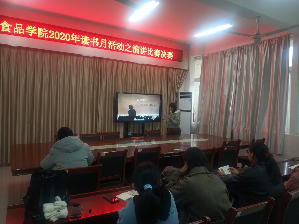 为了进一步倡导读书和学习,帮助大学生树立远大理想,引导大学生读书和爱书,加强学风建设,营造浓厚的校园文化氛围,构建和谐文明校园。食品学院于12月3日中午在食品学院实验楼1b206举办了食品学院2020年读书月活动之演讲比赛决赛,决赛阶段邀请辅导员柳诚刚和曹蒙老师出席指导。