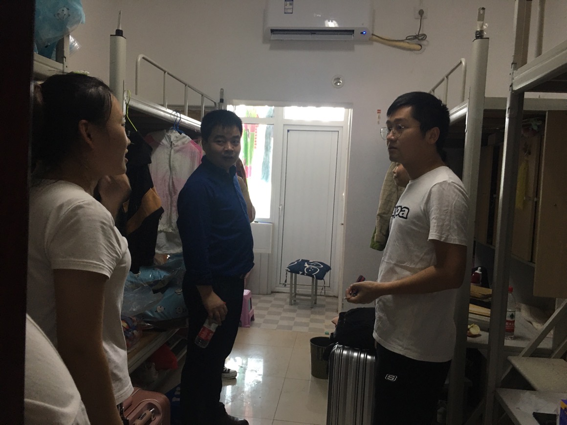 根据《beat365在线平台官网 2020 年秋季学期开学疫情防控工作方案》部署要求,2020年9月6日,食品学院2017、2018、2019 级全体学生错峰返校。为迎接学生返校,排查宿舍安全隐患,提高学生安全意识,营造文明温馨宿舍氛围,食品学院各班级辅导员在学院党总支书记夏新奎、副书记刘涛、副院长邵颖的带领下深入学生宿舍,与同学们进行了亲切交谈。