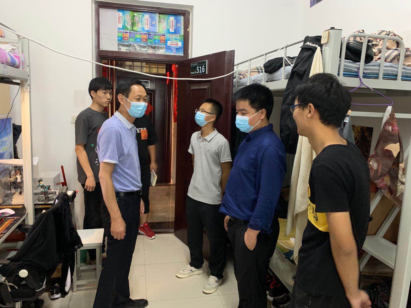 长达八个月的离校生活之后,同学们再次返回温暖的校园,心情十分激动。交谈之中,夏书记首先对同学们的健康返校表示欢迎,详细询问了同学们在家的生活学习情况、返校方式、新学期计划等,并提出了几点要求:1. 按照学校疫情防控工作方案,持续做好健康检测,坚持每日早中晚体温测量,坚持疫情防控不放松;2. 要避免聚集,做到不扎堆,错峰错时去食堂就餐,或者打包带回;3. 注意宿舍安全、卫生,要勤打扫、多通风,营造良好的生活学习环境;4. 做好新学期学习计划,认真预习复习;5. 注意劳逸结合,多参加体育锻炼,保持健康的体魄。