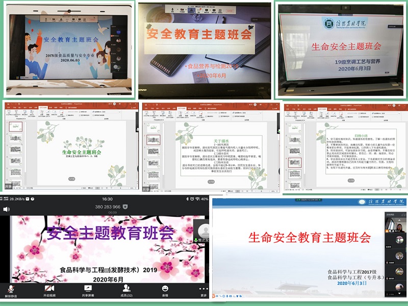 为提高学生们的安全意识,避免安全事故的发生,6月1日至4日,食品学院各班辅导员组织召开了生命安全教育线上主题班会。