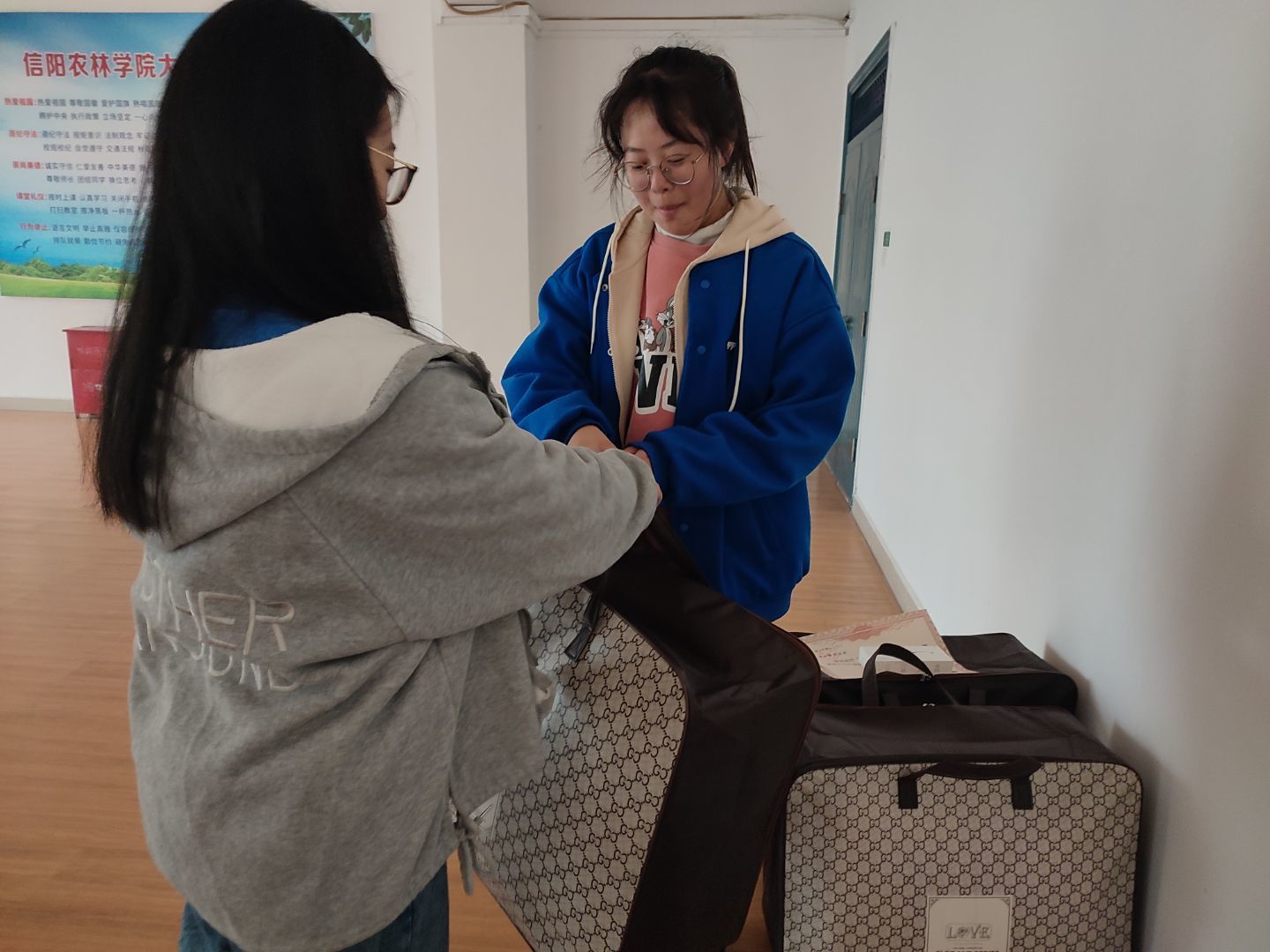 食品学院爱心棉被发放活动在热烈气氛下有序拉开了帷幕。在学院老师的带领下,将学校资助的爱心棉被送到同学们手中,对同学们表示真心问候,也将学校领导的关心问候传递给同学们,让同学们感受到了初冬的温暖。