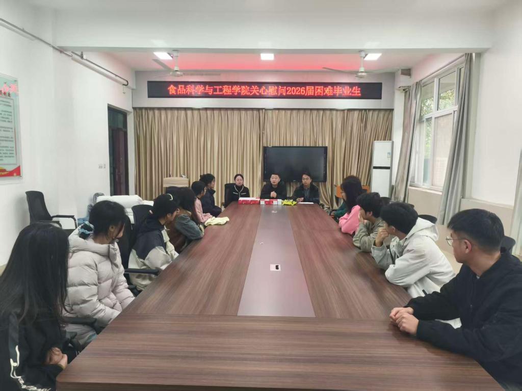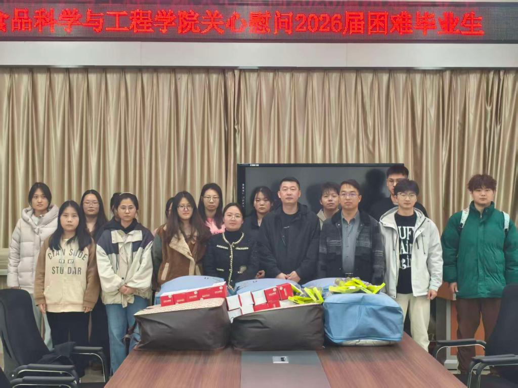 为进一步关心关爱家庭经济困难学生的学习与生活,10月24日中午,食品科学与工程学院在1B206教室举行2026届困难毕业生慰问活动。学院领导及辅导员代表出席活动,并向学生代表发放慰问物资。