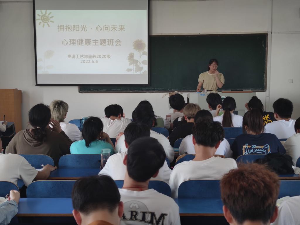 为进一步做好疫情期间大学生心理健康教育工作,培养大学生健全的心理素质,食品学院于5月2日-5月6日陆续召开“拥抱阳光、心向未来”心理健康教育主题班会。