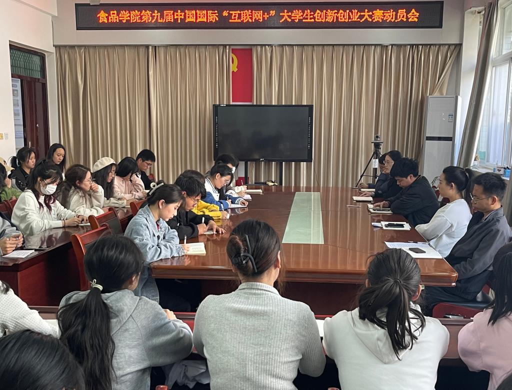 为做好第九届中国国际“互联网+”大学生创新创业大赛备赛工作,3月14日中午,食品学院在实验楼1B206召开了大赛动员会。会议由学院党总支副书记刘涛主持。