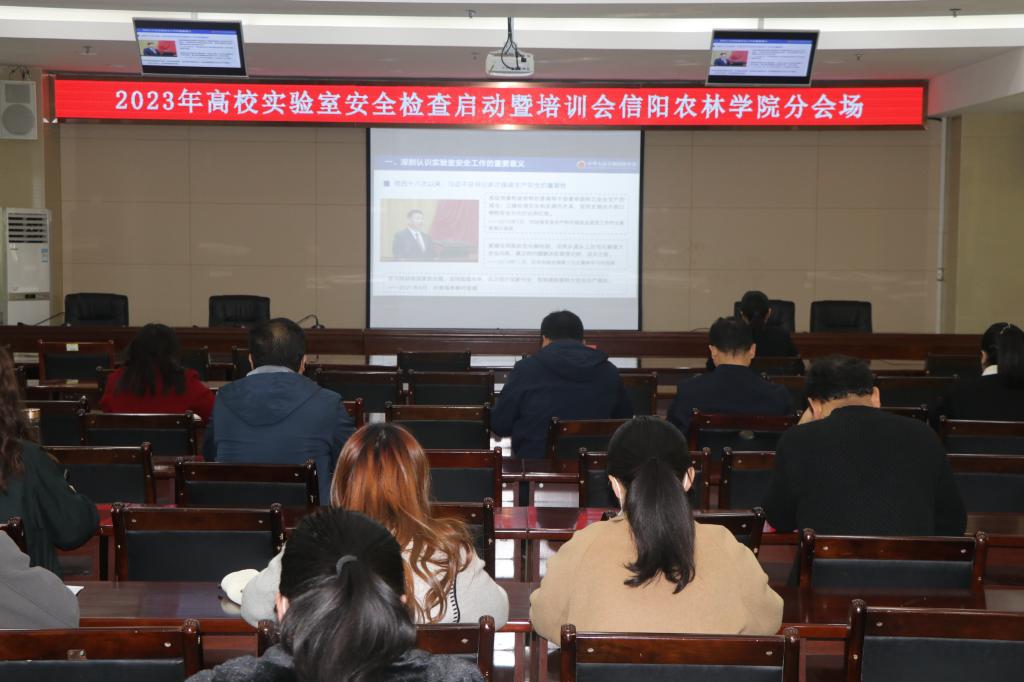 4.7日上午,为确保高校实验室安全运行,保障广大师生人身安全和校园稳定,按照《教育部办公厅关于组织开展2023年高等学校实验室安全检查工作的通知》(教科信厅函〔2023〕8号)部署,实验设备管理处组织相关单位及二级学院院长、实验室主任、实验室安全管理教师等30余人在行综合办公楼一楼会议室集中观看了线上培训会。
