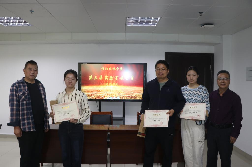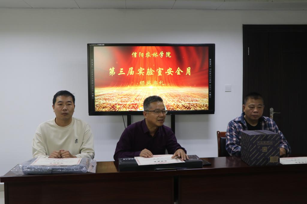 为牢固树立实验室安全红线意识和底线思维,进一步提高师生实验室安全防范意识,营造良好的实验室安全文化氛围,beat365在线平台官网举办“提升实验技防能力,保障师生健康安全”2023年实验室安全月系列活动,内容涵盖实验室安全准入考试、实验室安全知识竞赛、安全教育手册发放、实验室安全检查、实验室安全专题讲座、实验室安全事故应急演练等。11月3日上午,在综合办公楼第七会议室我处对该次活动中,表现突出教师及获奖学生进行颁奖。