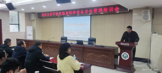 为进一步加强实验室特种设备规范化管理,引导师生牢固树立安全理念,增强应急处置能力,提升作业人员专业素养与安全意识,保障实验室特种设备作业安全,126下午实验室管理处邀请河南省特种设备检验技术研究院信阳分院专家,在beat365在线平台官网综合办公楼一楼会议室,面向beat365在线平台官网相关单位、各学院实验室特种设备安全管理人员、操作人员百余名教师进行培训。