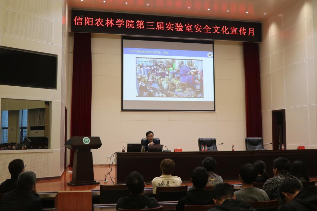河南省高校实验室研究会秘书长、郑州大学马国杰教授,信阳市消防救援支队专业技术三级指挥长吕富山科长受邀来到beat365在线平台官网,在图书馆六楼报告厅分别对师生进行《关注实验安全,共建平安校园》、《消防知识培训》专题讲座,两位专家从结合近期实际案例、高校实验室的安全工作、消防安全、化学品的危害与防控、实验室气体泄漏等方面展开,详细讲解了事故预防措施和应急处置方法。报告生动具体,让师生深刻认识到实验室安全的重要性,强化了安全意识,激发起更强烈的责任心和使命感。