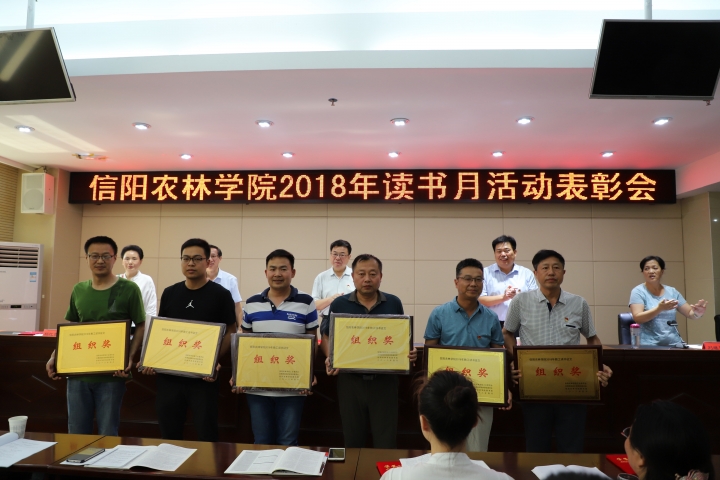 接着,校工会主席黄遵东宣读了“关于表彰2018年读书征文活动获奖文章的决定”。学校领导向获得教工团体组织奖的财经学院分会、图书馆分会、外语学院分会、生物与制药工程学院分会、行政一分会、工商管理学院分会授予荣誉匾牌,向获得本次征文比赛一、二、三等奖的24名教工作者颁发了荣誉证书。同时,征文获奖者王海燕老师,优秀组织奖代表、行政一分会赵华老师,学生代表李大龙同学向与会师生分享了精彩的读书心得和阅读经验。随后,图书馆向校团委捐赠图书100册。