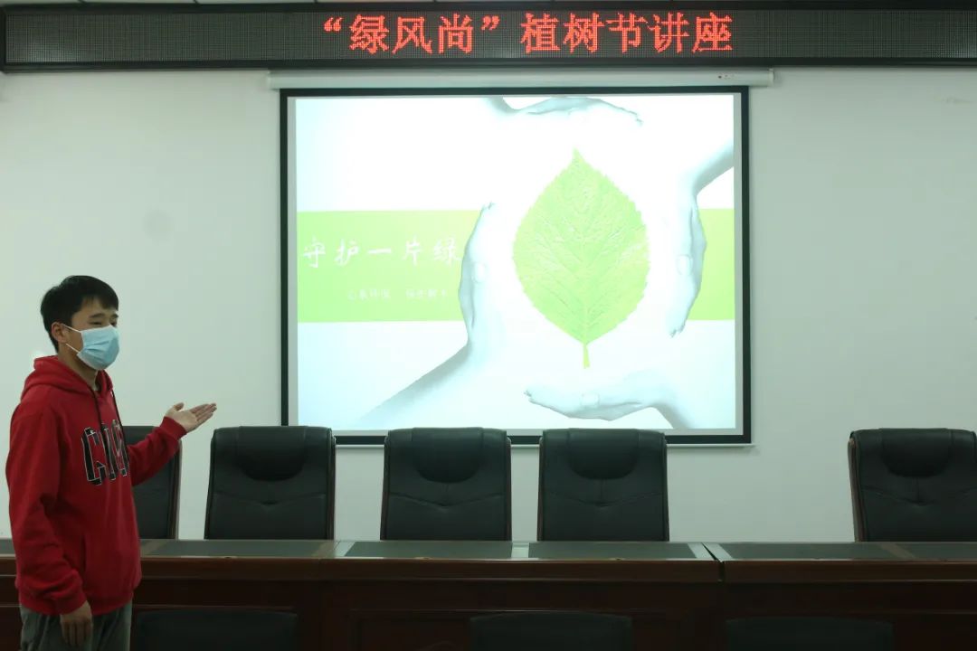 讲座通过趣味问答形式讲述了植树节的设立过程,加深了同学们对植树节的了解。讲座从生态环境保护入手,讲解了推动绿色发展,建设生态文明的重大意义,呼吁当代青年要树立和践行“绿水青山就是金山银山”的理念,一起弘扬“绿风尚”,倡导低碳生活,争做生态文明的实践者、生态环境的守护者。