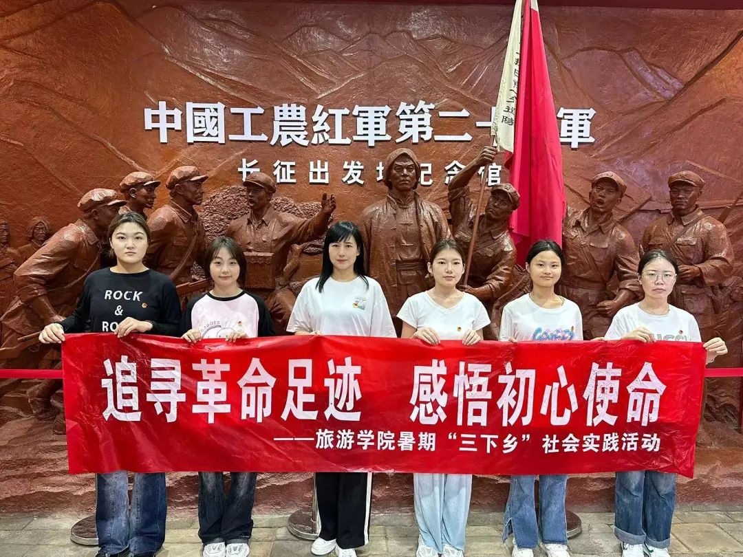 7月4日上午,旅游学院在信阳市罗山何家冲红色革命纪念地开展了主题为“追寻革命足迹,感悟初心使命”的暑期“三下乡”社会实践活动。旅游学院团总支书记王芳老师带领于方琪、李开欣、赵雨桐、孙含钰、张甜甜五位同学参加了此次实践活动。