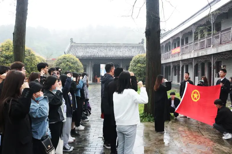 细雨霏霏,苍松翠柏在春雨中显得格外庄严肃穆。在细雨中,校团委孙羽佳老师首先介绍了豫南红色革命的摇篮和发源地,以及红色圣地柳林在民主革命时期发挥的重要作用。随后,丁志渊同学讲述了恽代英同志在柳林开办“互助社”传播星星之火的故事。在祝伟洋老师和李怡霏同学的带领下,在场党员和团员重温了入党和入团誓词,时刻牢记作为党员和团员的初心使命。