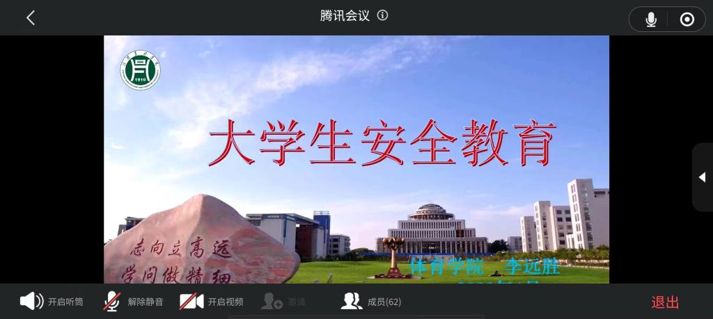 为增强学生安全意识,提高自我保护能力,维护校园和谐发展,9月14日上午,体育学院采用线上视频的形式开展“大学生安全教育”主题讲座,党总支副书记李远胜主讲,休闲体育2022级全体同学参加。
